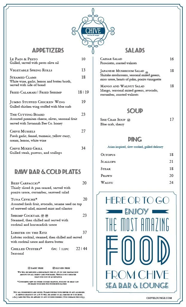 Located on bustling Broughton Street, Chive is a refreshing change of pace for those seeking an intimate experience like no other, for special occasions or a weekday wind down. Our signature vintage cocktails made with top-shelf favorites are perfectly paired with dishes incomparable to any fare served downtown.